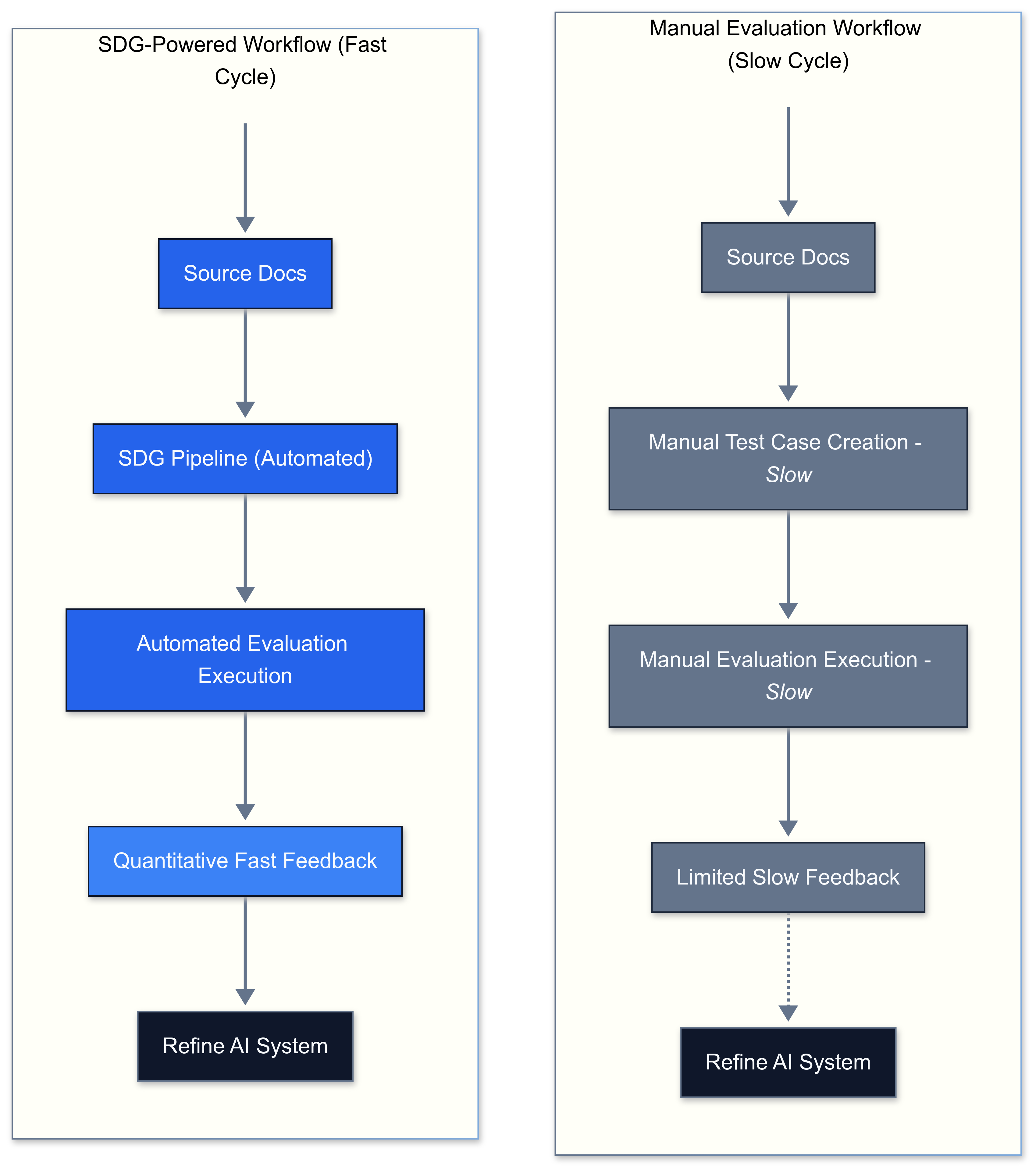 - Accelerated Time-to-Market: SDG overcomes the "cold start" problem. You can build robust test sets before accumulating significant user data, enabling earlier, iterative testing and faster deployment cycles.